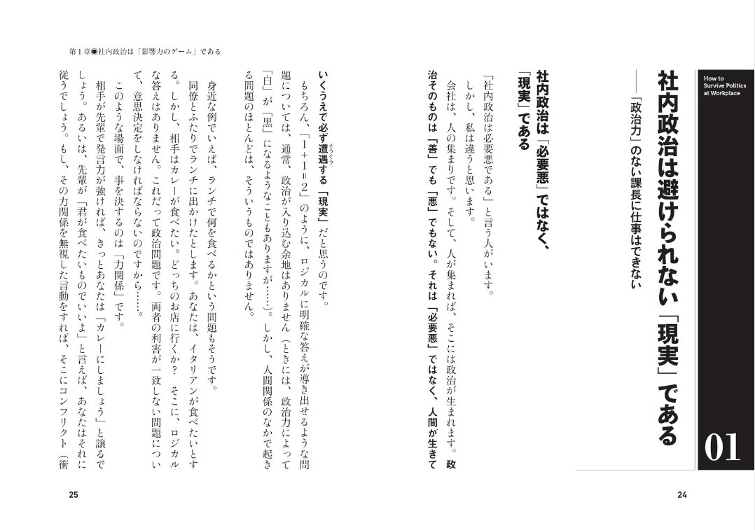 会社は人の坩堝。必ず「政治」がある。その「政治」に背を向けていては、いくらロジカルシンキングが得意でも「仕事」はできない。特に、課長になったら「社内政治」こそが最重要課題となる。「社内政治」という非合理なゲームを生き抜く初の「教科書」。