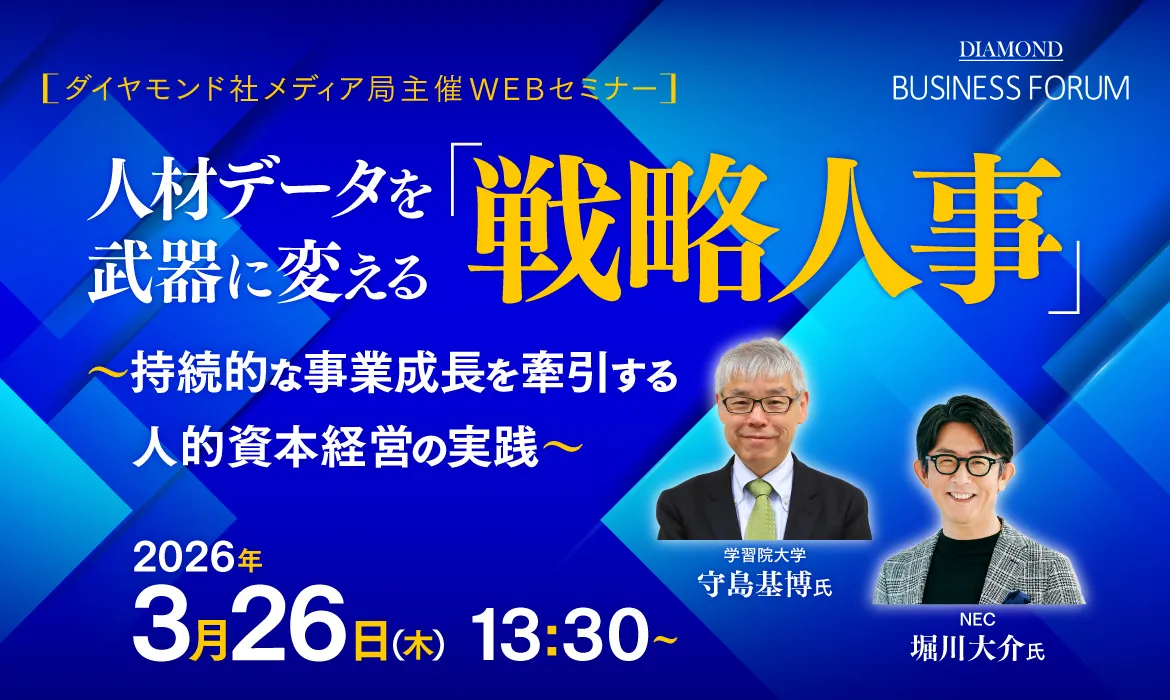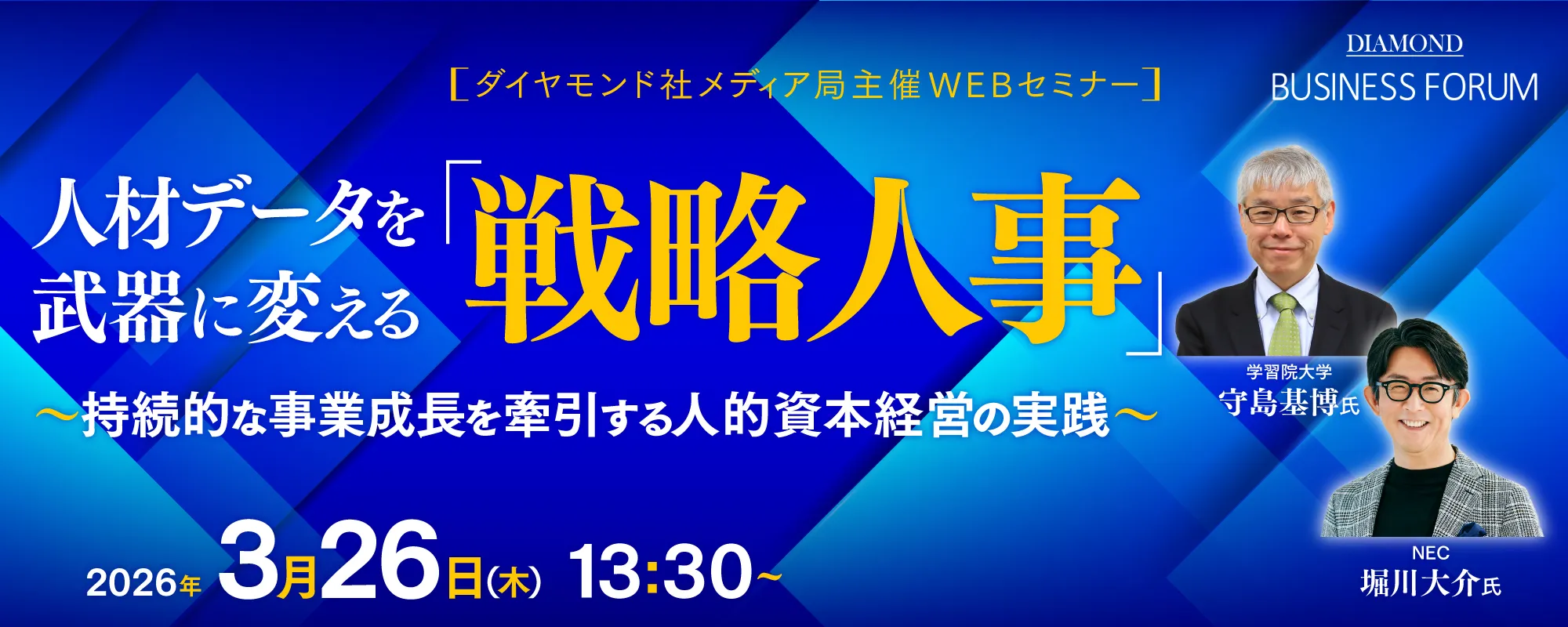 本講演では、「戦略人事」の本質とその重要性について解説します。労働人口の減少や働く人の価値観の多様化、デジタル化等の経営環境の変化を背景に、経営戦略の実現に資する人材マネジメントがこれまで以上に不可欠となっています。そこで鍵を握るのが、一部の優秀層だけではない多様な人材の価値を最大化する「全員戦力化」です。人材マネジメントの「個別化」や、活躍の舞台を整える「組織力開発」の重要性に触れつつ、企業価値を向上させるこれからの「戦略人事」のあり方をひも解きます。