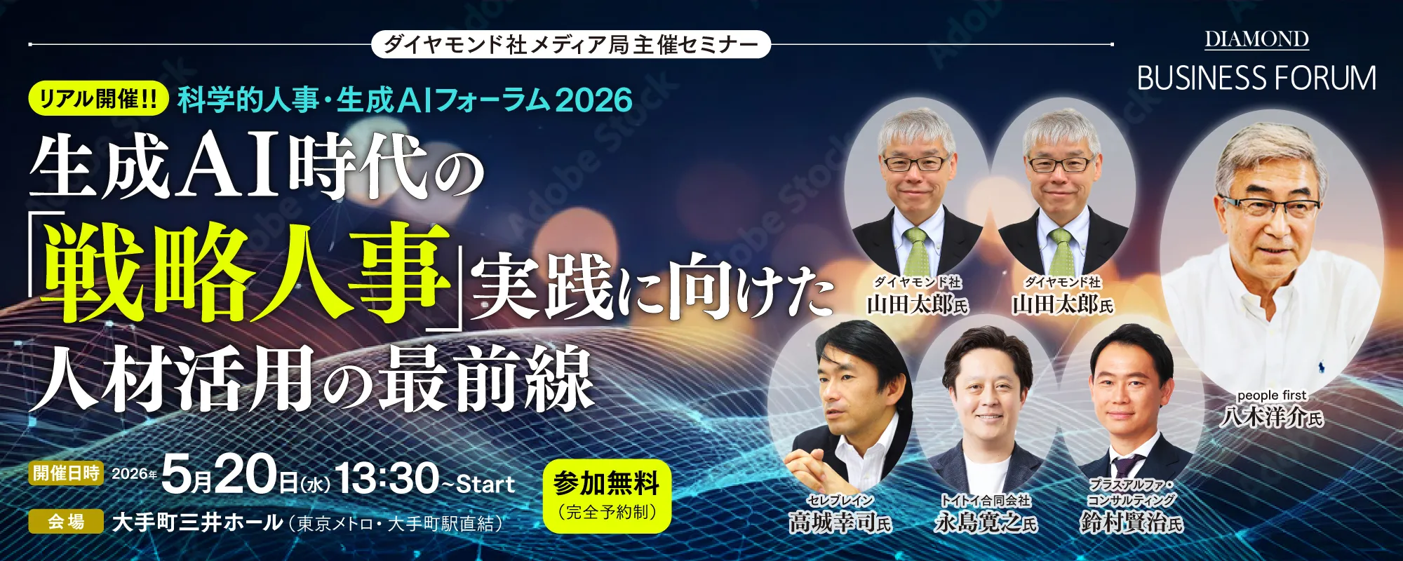 本フォーラムでは、「人」を起点とした戦略人事の本質と、その実現に向けた人材活用の最前線を探ります。同時に、AI・データ活用による人事変革を展望しつつ、データドリブンな意志決定と人間中心の施策を融合させた、持続可能な人的資本経営の最適解を探っていきます。